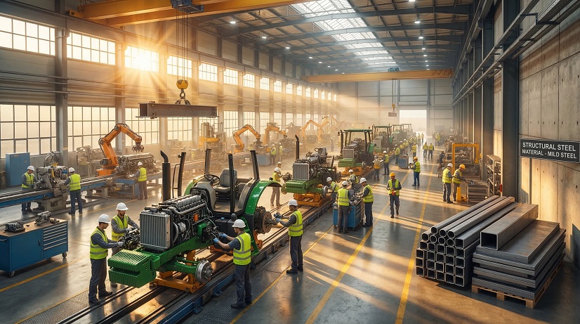Steel used for tractors, farming equipment, machine frames, and agricultural implements.