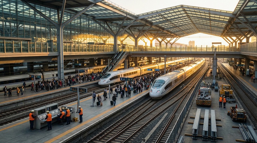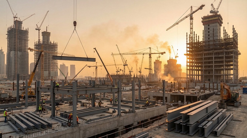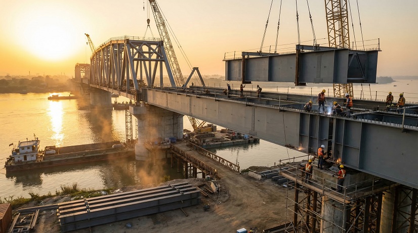 Steel used for railway structures, bridges, platforms, rail equipment, and metro infrastructure.