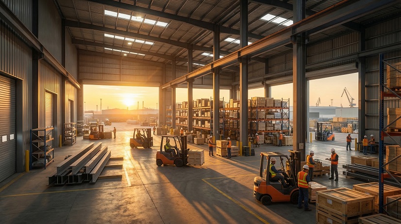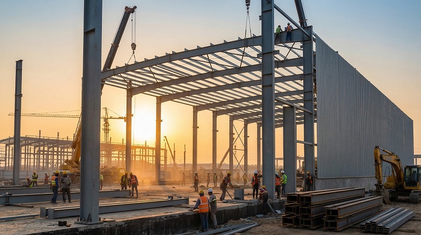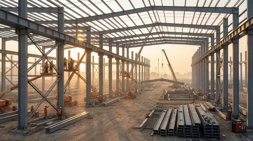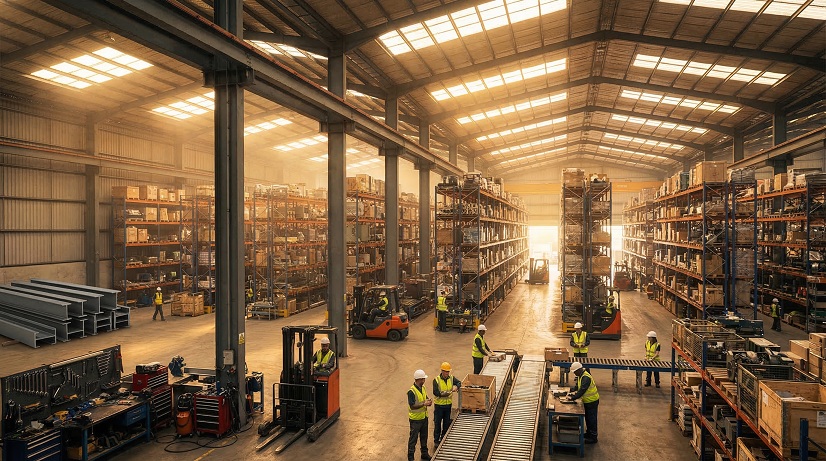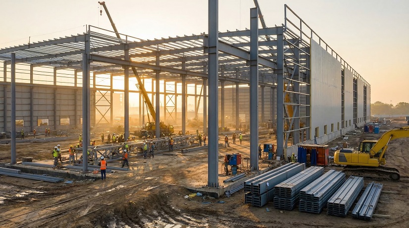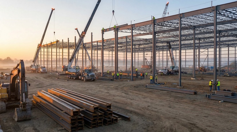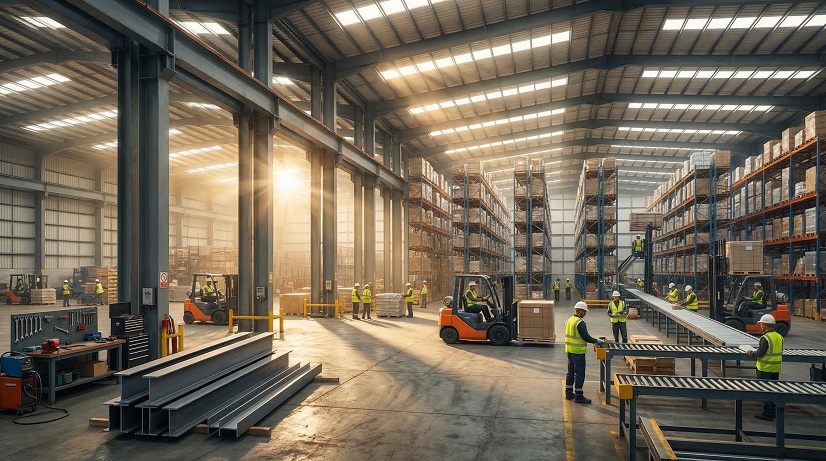 Steel used for warehouse frames, industrial sheds, storage structures, and support systems.