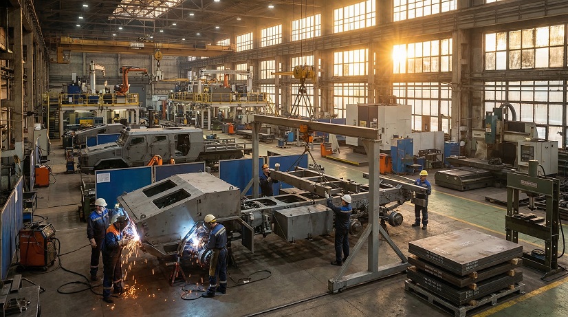 Steel used for defense equipment structures, heavy engineering components, and fabrication.