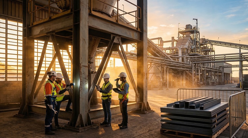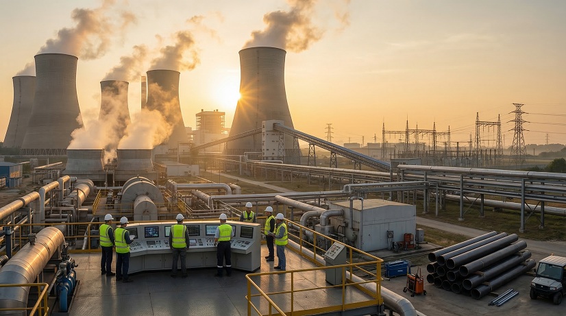 Steel used for power plant structures, equipment frames, piping systems, and energy facilities.